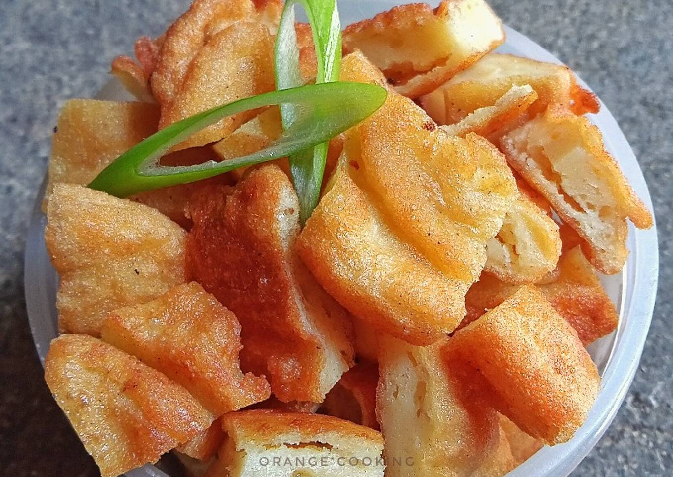 - Panaskan minyak goreng kemudian goreng 1 sdm adonan atau bisa di masukkan piping bag dan semprotkan saat menggoreng, goreng hingga kuning kecokelatan,angkat