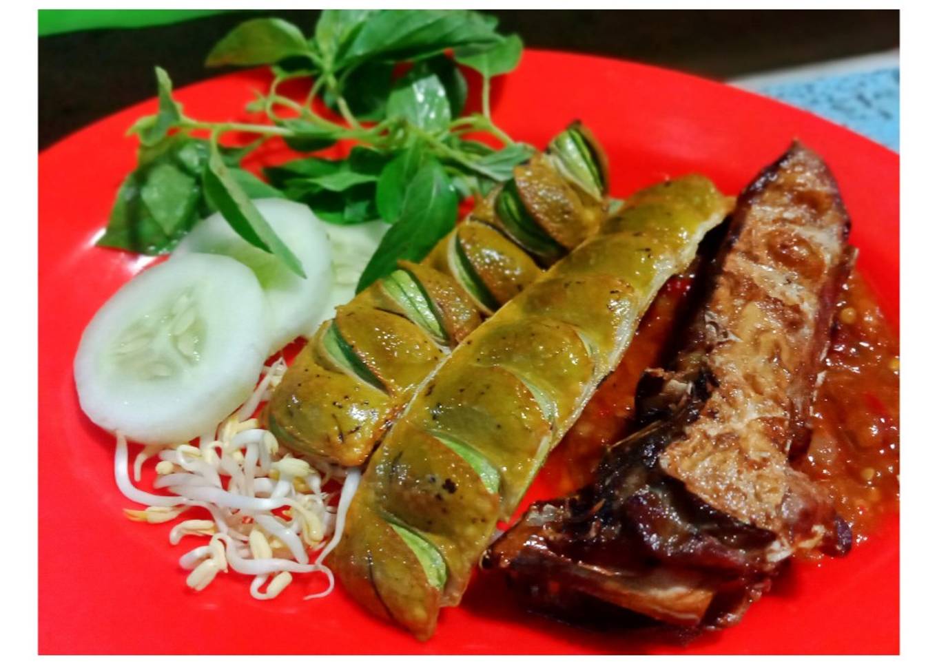 - Lalapan (cambah, timun, kemangi)