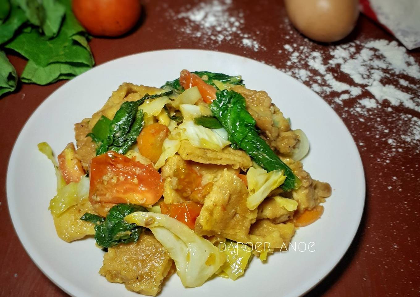 - Masukan tepung goreng dan tomat.