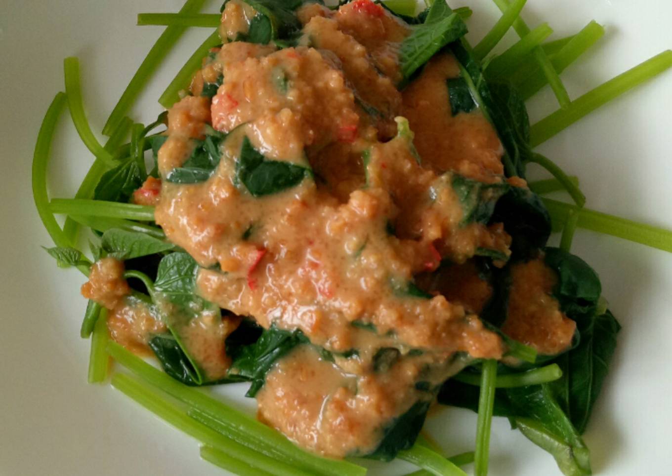 - Lalu masukkan kacang kedalam bumbu yang sudah dihaluskan ditumbuk lagi sampai tercampur rata.
