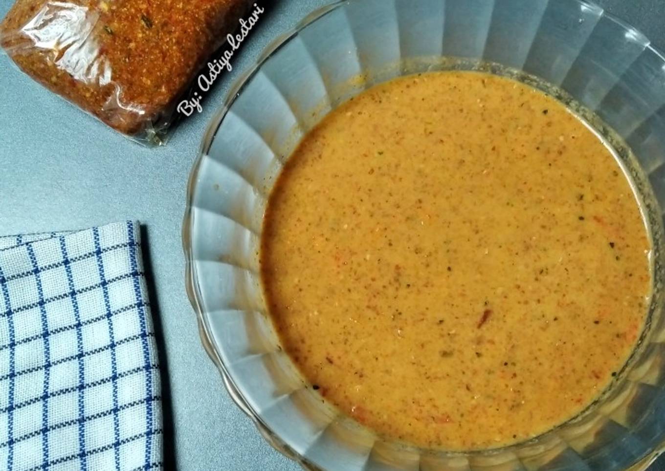 - Haluskan cabai merah, bawang putih, daun jeruk, dan kencur. Kemudian tambahkan asam jawa, garam, dan gula merah. (Me: pakai blender, jadi nunggu agak dingin dulu bumbu halusnya baru di blender)