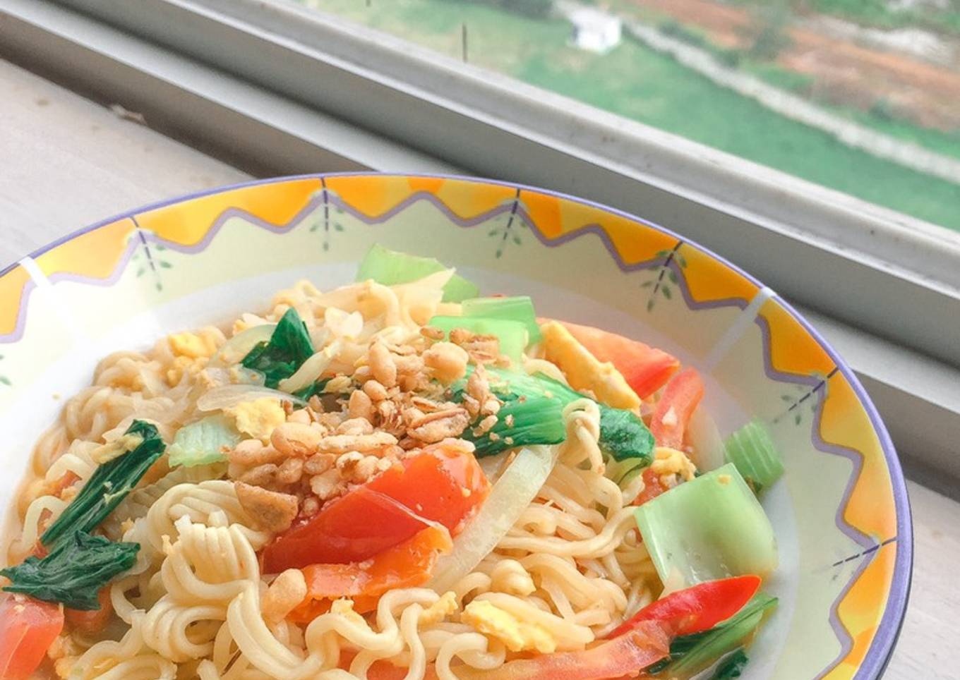 - Taburkan bawang goreng indomi diatasnya. Ah mantap 🥳✨