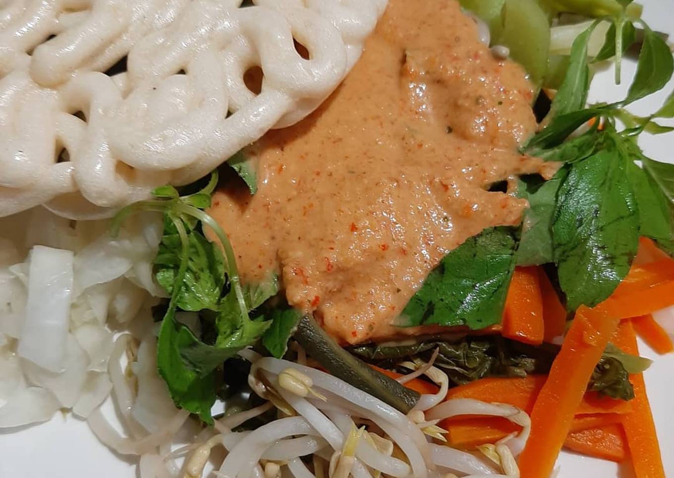 - Taruh sayuran dipiring secukupnya, siram bumbu, dan tambahkan kerupuk. Kalau pecel Madiun asli pakai peyek dan ada telor asin ya Bun? kalau versi saya ini saja sudah cukup 😀 Bismillah... siap disantap.